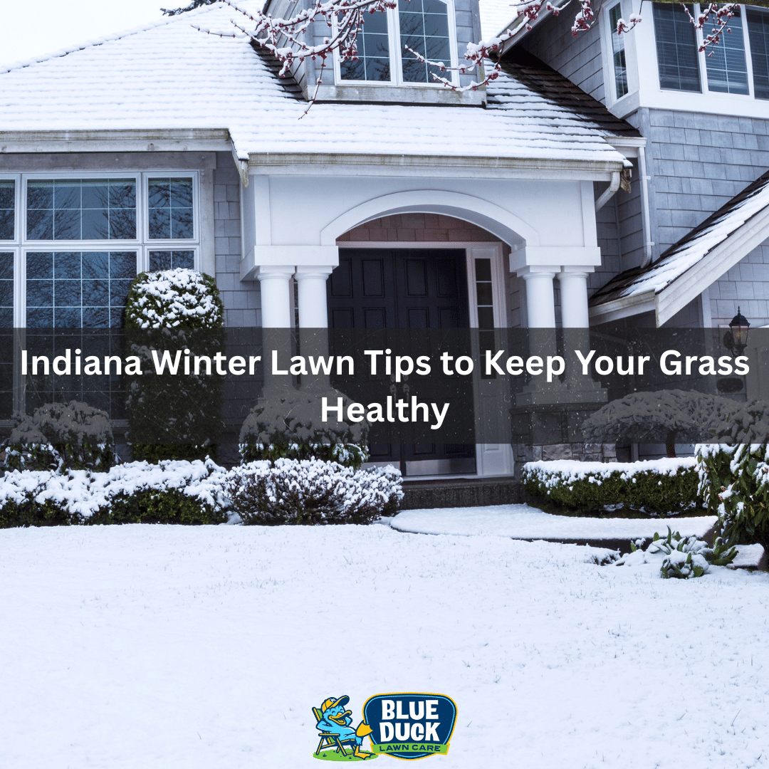 If you’re wondering how to protect your yard from Indiana’s freezing temperatures, these Indiana winter lawn tips will help. Winter lawn care is often overlooked, but what you do now directly affects how your lawn grows next spring. At Blue Duck Lawn Care, we’ve seen that simple cold-weather steps like proper mowing, cleanup, and fertilizing can make your lawn come back greener and thicker after the snow melts.